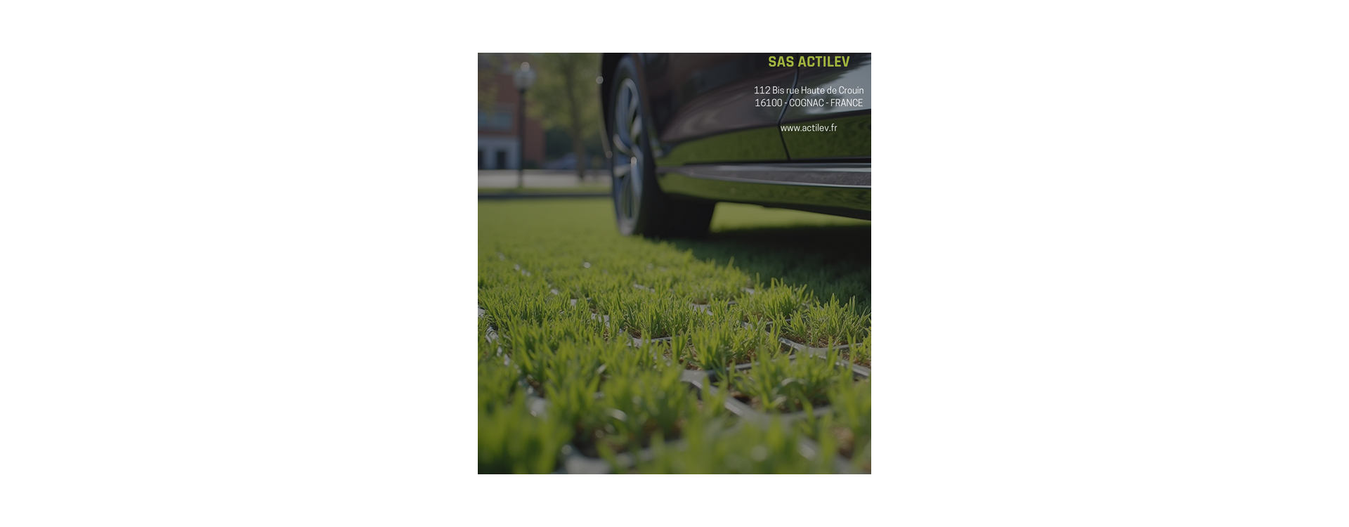 Voir la dalle alvéolée ActiGrid — fabriquée en France en PEHD 100 % recyclé, résistance 20 t/essieu, disponible sur devis pour tout projet à partir de 50 m².