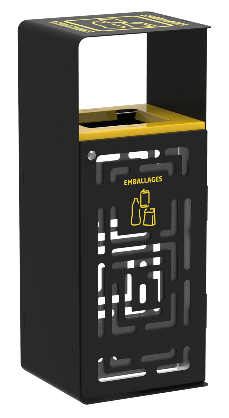 Cette poubelle extérieur design artri en acier traité anti-uv et anticorrosion est robuste. Sa porte et sa façade ajourées avec des plaques transparentes permet une surveillance continuer des déchets. La plaque de fond anti-nuisibles fournie est à installer au fond de la corbeille de tri sélectif.